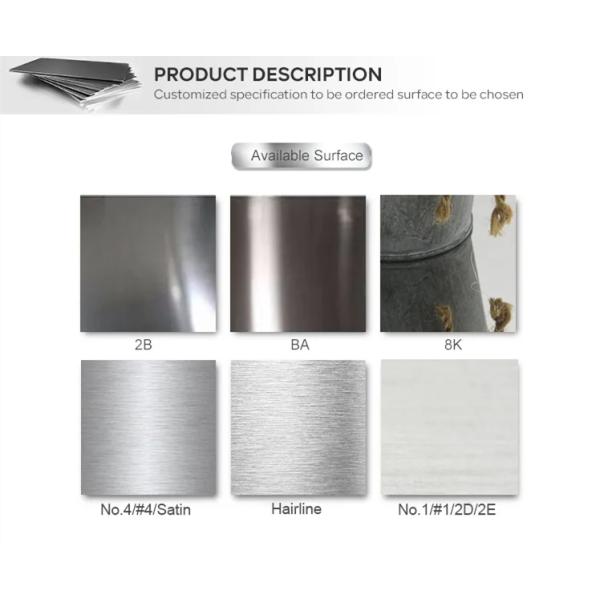 | Surface Finish | BA, 2B, 2D, 4K, 6K, 8K, NO.4, HL, SB, Embossed |